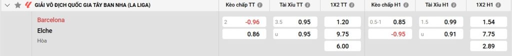 Phong độ và lịch sử đối đầu Barcelona vs Elche