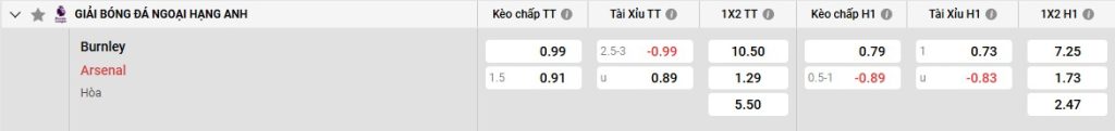 The Clarets sẽ chịu áp lực ngay từ đầu và Pháo thủ sẽ muốn tận dụng điều đó. Arsenal nhiều khả năng sẽ chơi tốt hơn Burnley trong trận đấu sắp tới tại Ngoại hạng Anh. Burnley mặc dù đã có dấu hiệu hồi phục trong 2 trận đấu gần đây, tuy nhiên về mặt chất lượng đội hình, họ không có nhiều cơ hội để vượt qua được thầy trò Mikel Arteta.