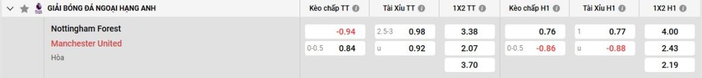 Soi kèo Nottingham Forest vs Man Utd – 22h00 – 01/11 – Ngoại hạng Anh