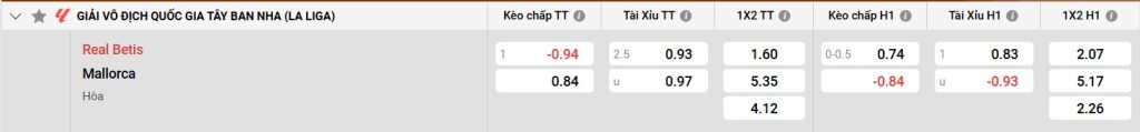 Soi kèo Real Betis vs Mallorca – 03h00 – 03/11 – La Liga