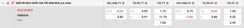 Soi kèo Real Madrid vs Valencia